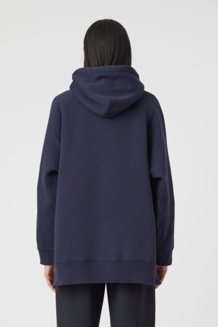 AED 299.99Made of a very soft cotton mix: long and relaxed hoodie with wide sleeves. Lined hood with drawstring, front pocket, cuffs, C stitching and side slits.