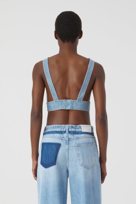 AED 405.00Original price was: AED 405.00.AED 202.50Current price is: AED 202.50.Bra made of non-stretch denim with slight used effects and contrasting stitching. Minimally adjustable with double press stud. Part of our sustainable denim line A BETTER BLUE.