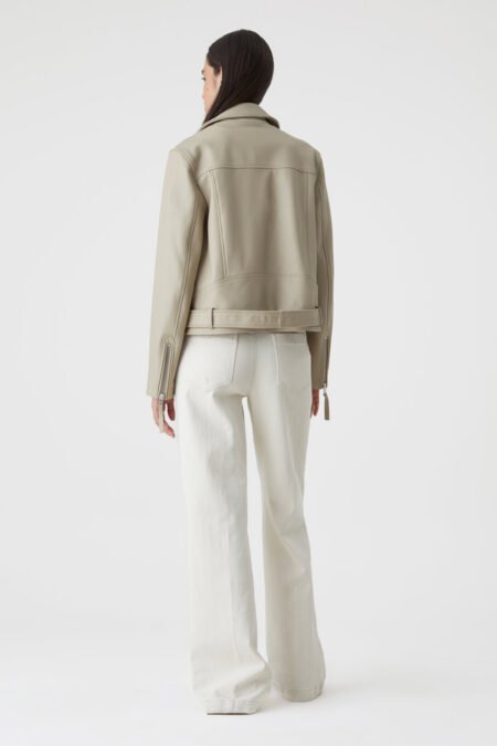 AED 789.00Made of soft nappa leather with a matt look: biker jacket with a slim fit, fixed lapel and press studs. Laterally offset zip, zip pocket and belt with metal buckle. Lined inside finish with two inside pockets that can be buttoned.