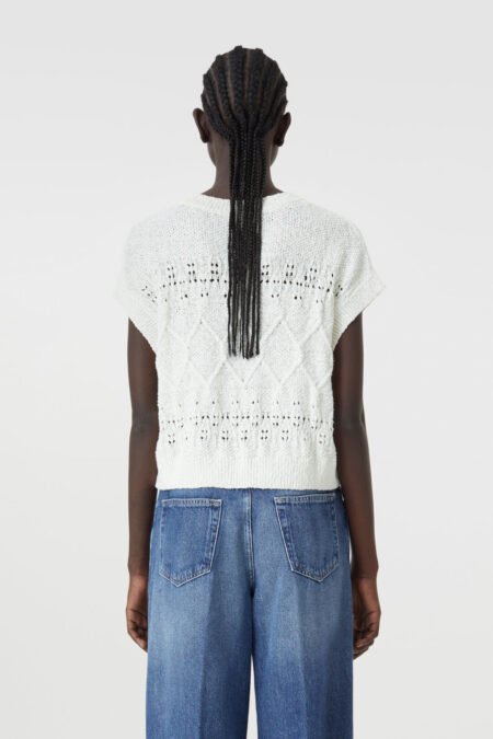 AED 239.00Light knit sweater vest made of high-quality Italian slub yarn with short sleeves and openwork details. Round neckline, sleeve cuffs and hem band.